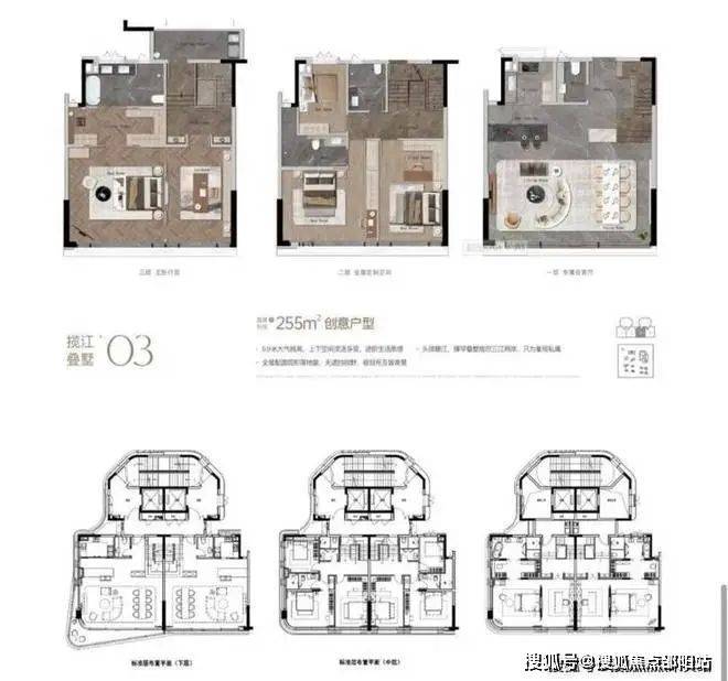 10栋一线望江叠墅,10层高,4梯4户,有毛坯有装修,240~309㎡