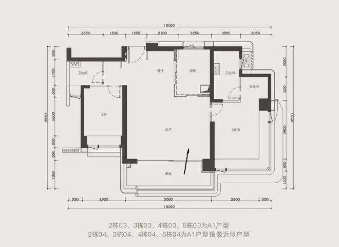 2/3/4/5栋03、04户型:123-127平 2房