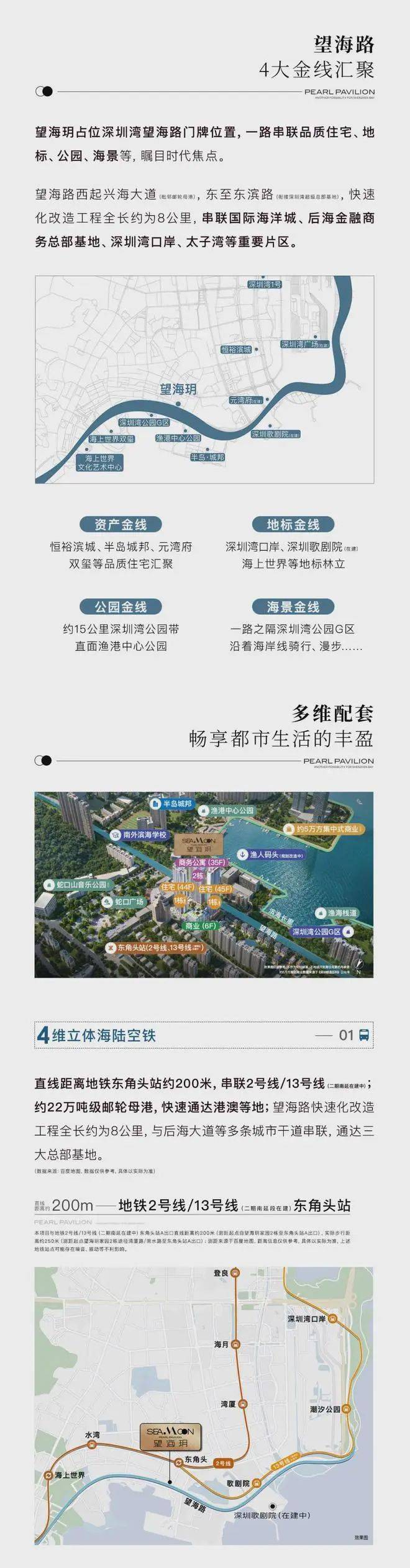 周边是太子湾招商玺家园、海上世界双玺花园、半岛城邦等深圳顶级豪宅社区构筑的沿海豪宅线上,坐拥山海阔景、完善配套以及优质人居环境。