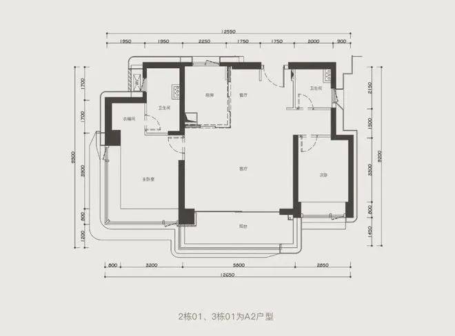 2/3栋01户型 127平 2房