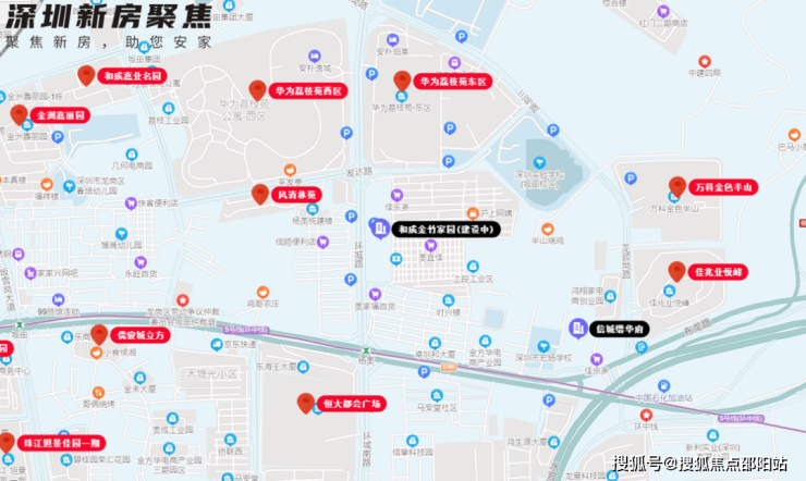 坂田以布龙路为界分为坂田南和坂田北,项目处在坂田北片区但与坂田南片区相邻。目前坂田南、北两个片区整体区别比较明显。坂田北以华为基地、天安云谷为、康冠、神州等一众企业为代表产业优势较为突出,但城中村分布较多且历史遗留建筑密集整体宜居性要差一些。坂田南商品房小区分布较多且临近银湖山脉自然景观资源突出,再加上近市区的优势整体宜居性要好很多,但坂田南产业相对较弱。