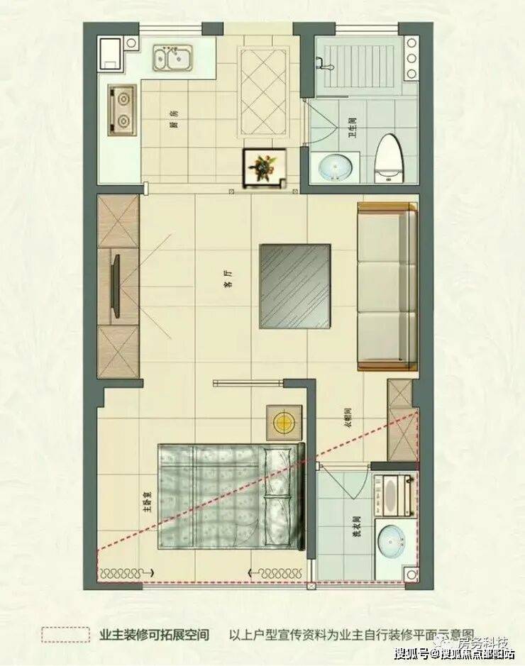 B户型 建筑面积44.88㎡一室一厅一厨一卫