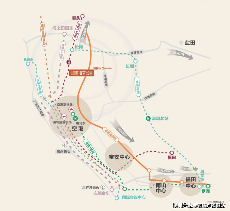 广深沿江高速:粤港澳东岸的快速主干通道,沿海向南通往妈湾、前湾、桂湾等前海核心区,亦可向北直通广州