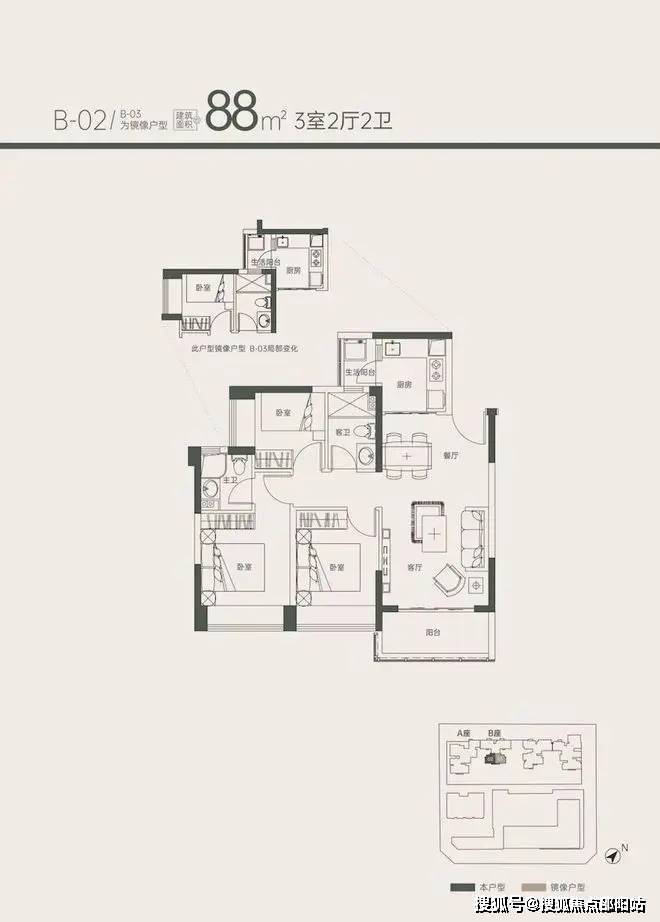88㎡3房2卫 单价7.3-7.9万/㎡ 总价647-701万58套