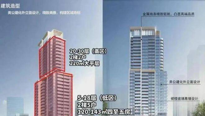 5-18层,2梯5户,户型为120-143㎡四至五房;