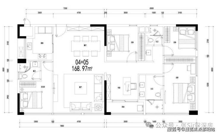 🏡C04+05户型:约169㎡阔绰舒居4房,高处视野私享无遮景致
