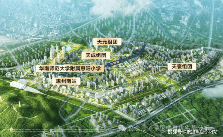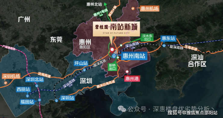 碧桂园南站新城:项目位于惠阳淡水,惠阳站(以前叫惠州南站,现已更名)旁,地处政府与碧桂园强强联手打造的高铁新城片区。碧桂园·南站新城是由碧桂园集团在深圳东打造的智慧之城、生态之城、人文之城。采用分层立体城市规划设计理念、地面都是公园、无车辆穿行;引入至生态的垂直绿化理念。