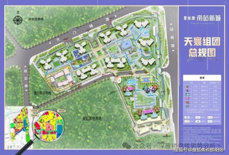 碧桂园南站新城,整体占地面积:45万㎡,建筑面积:130万㎡(天寰总占地面积约3.1万㎡,建筑面积约10.78万㎡)天寰总栋数:12栋,容积率约3.2,绿化率30.1%。