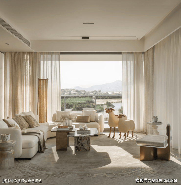 以全景视野,实现度假“自然共生”,中旅·馥棠公馆摒弃传统结构中的视觉阻隔,结合大扇系统门窗,将建筑转角转化为全景视窗。