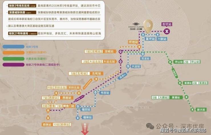 【创城云璞花园】距离3号线富坪地铁站A口实际距离约300米,而且还临近在建中的21号线和在建中的深惠城际,如果深惠城际轨道开通了,那么2站就可以到大运北、6站到深圳北、7站到西丽、10站到前海,所以在龙岗中心城、深北、南山的客户完全不用担心交通问题
