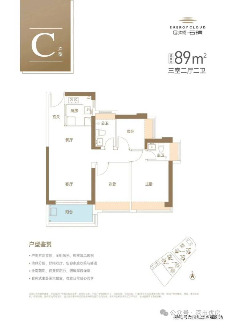 89平的3房其实设计和84平的一样,朝向也是一样,只不过客厅开间多了10厘米