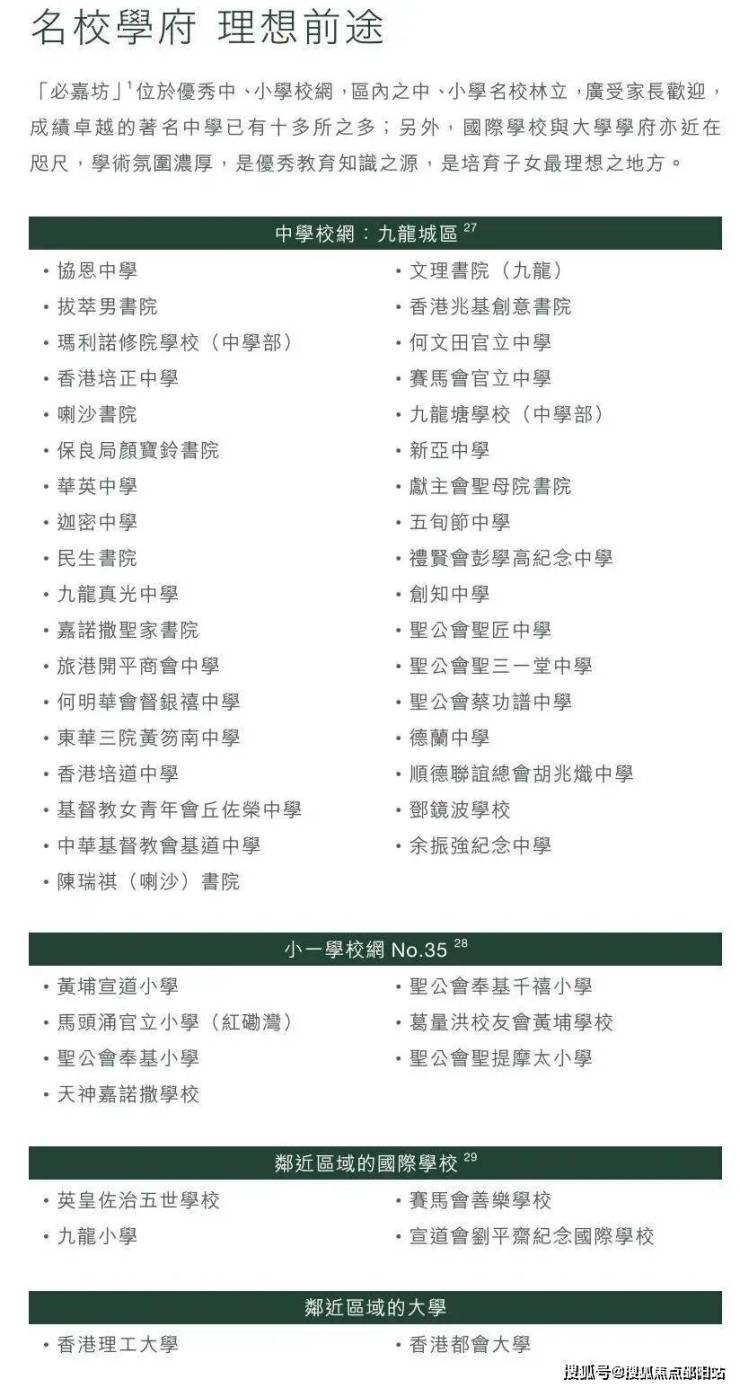 小学是35校网,而中学校网属于九龙城区,有多达16家Band1学校。同时,红磡黄埔距离何文田和九龙塘都很近,有多家国际学校可以选择。