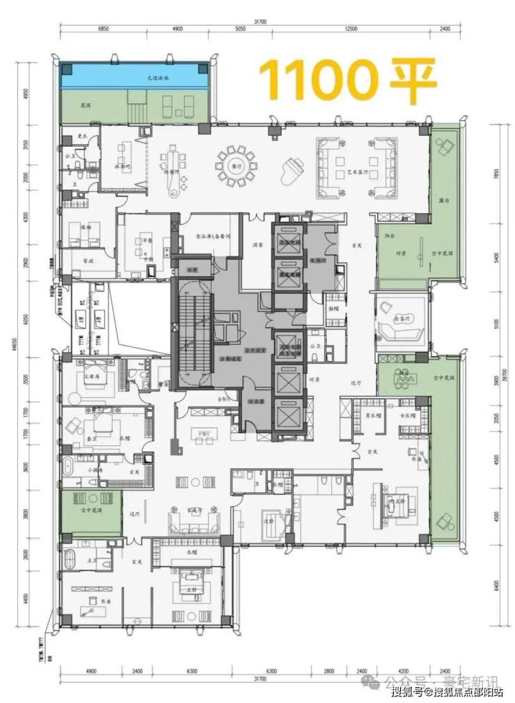 ④顶楼整层不是复式,约1100㎡顶奢大平层仅两套
