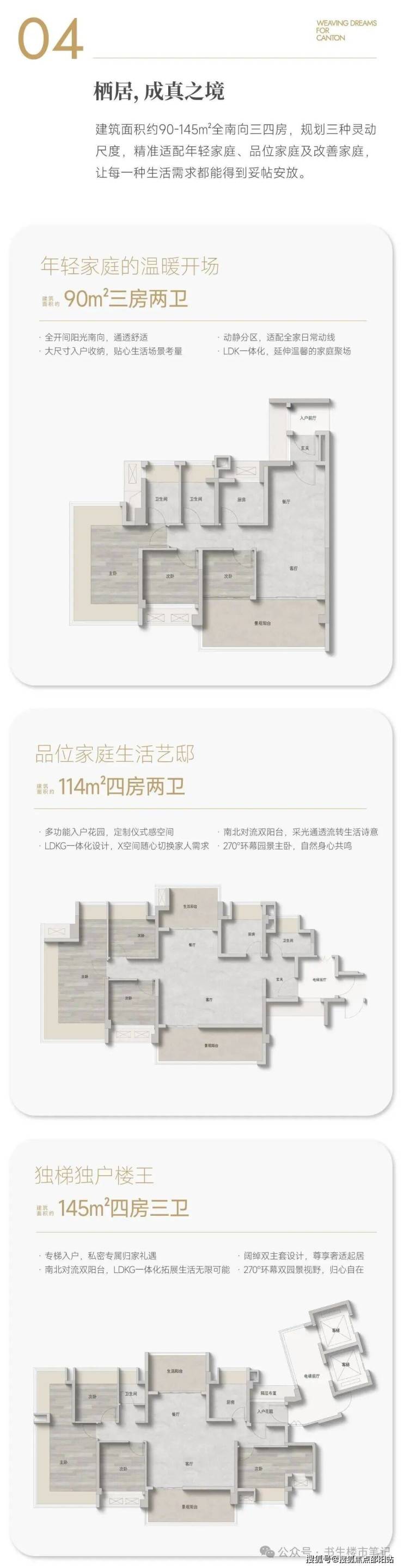 【面积】约90-114-144㎡的三至四房