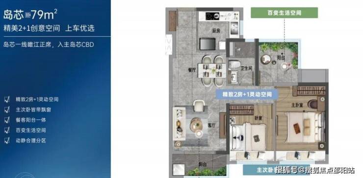 主打79-119㎡2+1至3+1房精装户型,得房率92%-98%,户型方正、南北通透,覆盖刚需与改善需求。均价12888-16000元/㎡,总价98-180万,首付低至15万,性价比突出。