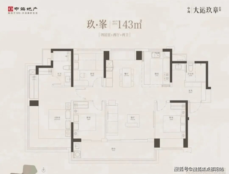 143m²的4房2厅2卫,设计的是竖厅南北通透格局,进门入户玄关,客厅4.5米开间,餐客厅分离设计,四开间朝南,全屋七面飘窗,主卧大套间做到了270度转角无柱飘窗,U型厨房,公卫三段式干湿分离,得房率约92.2%(包含赠送),客厅连接次卧出7.4米长的观景大阳台,全部主朝东南向,看大运中心+大运公园景观。