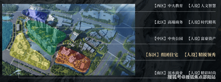 东区为住宅组团,有滨水园林,近地铁和商业,有精英要的奢享及高效;
