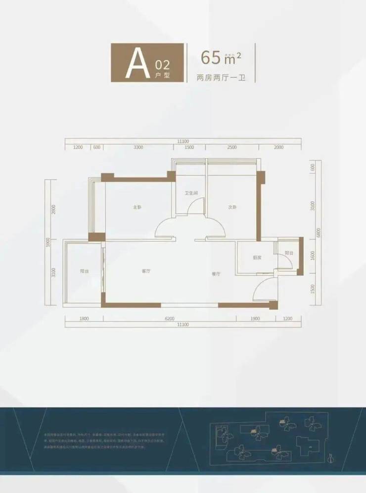 65㎡的2房1卫,其中A1-02、03户型互镜像