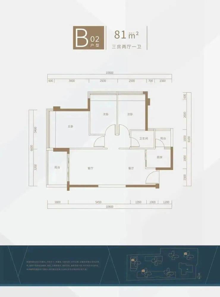 该户型朝西,次卧朝南,也是双阳台设计,整体布局与65㎡相似,是65㎡的加大版(多一个房间)