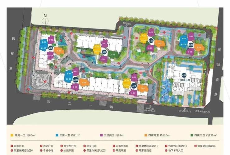 面积:65㎡2房1卫,81㎡3房 2卫,89㎡3房2卫,120㎡4房2卫138㎡4房3卫