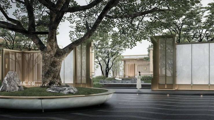 园林采撷《梁园飞雪图》画中意境及神韵,引入曲水飞虹、万倾涵碧、松间、观澜、林隐等景观组团,再现“枯山水”东方禅意画卷,缔造具有东方韵味的新中式之美。