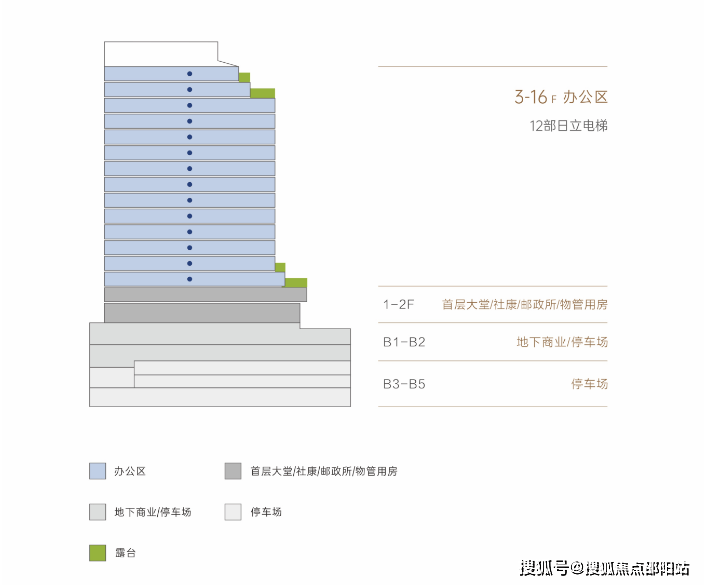 高速电梯:38部日立电梯,分区运营,最高可达7m/s