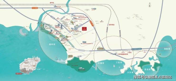 崖州高铁站:直线距离约6km