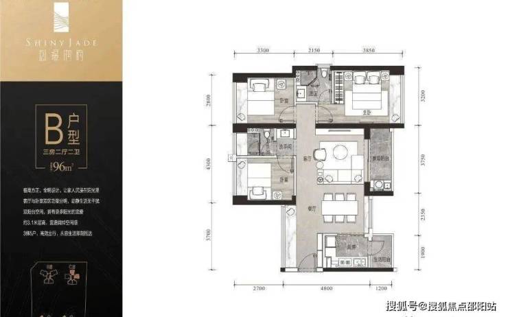 【户型面积】约99㎡3+1房2卫/95㎡3房2卫