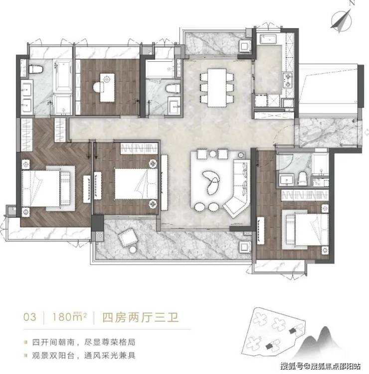 【A1-03】 建筑面积约180㎡四房两厅三卫