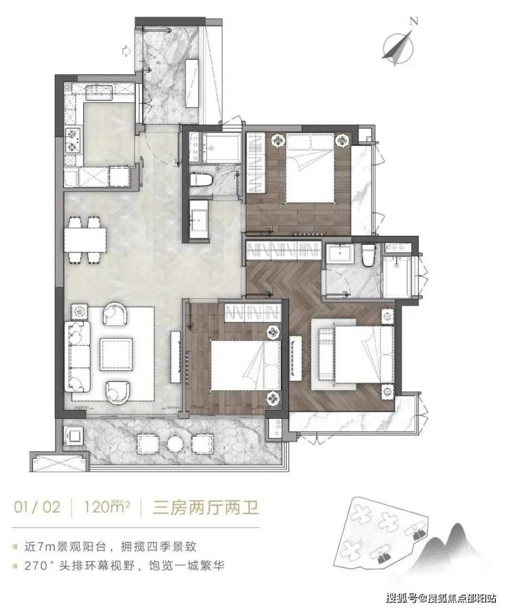 【A1-01/02】 建筑面积约120㎡三房两厅两卫
