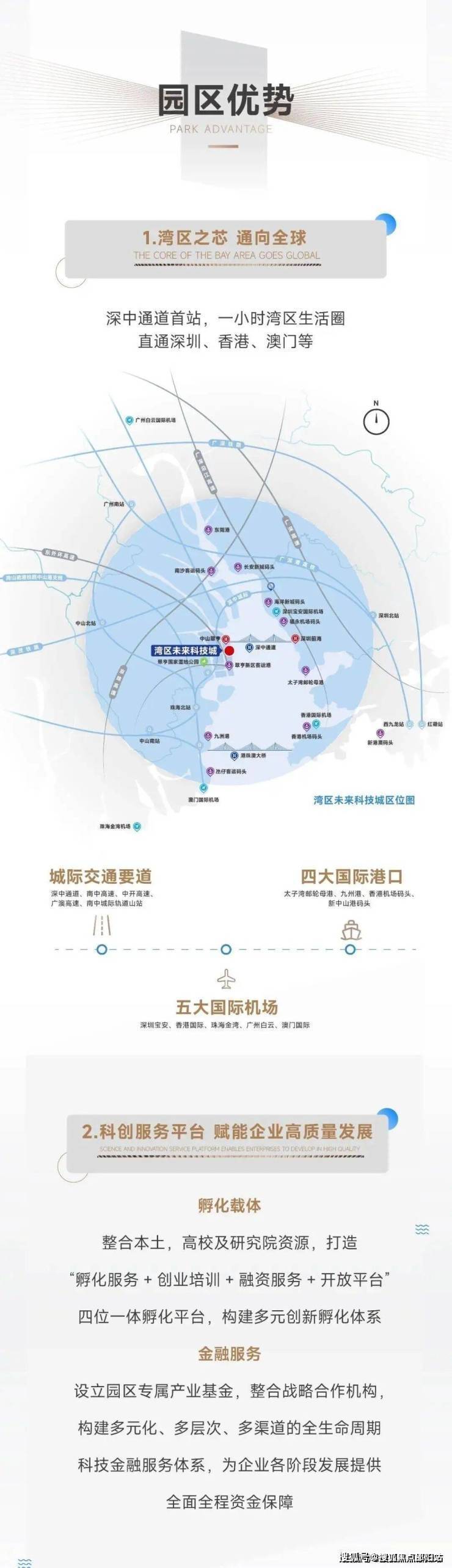项目将打造以新一代信息技术、智能制造和现代服务业为主的“产、城、人”融合共生的产业新城,力争建设成为粤港澳大湾区“产业链再造、价值链提升、创新链完善”的新标杆。未来,园区将打造“深圳科研+中山转化”和新质生产力发展的示范标杆。✨湾区未来科技园开发商直连专线:📞 400-832-8772