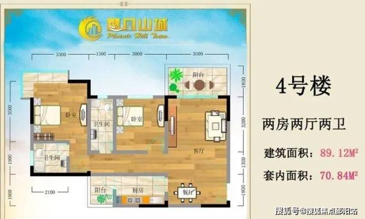 4号楼 两房两厅两卫 建筑面积89.12㎡