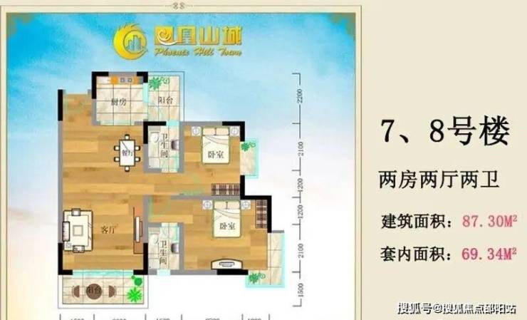 7、8号楼 两房两厅两卫 建筑面积87.30㎡