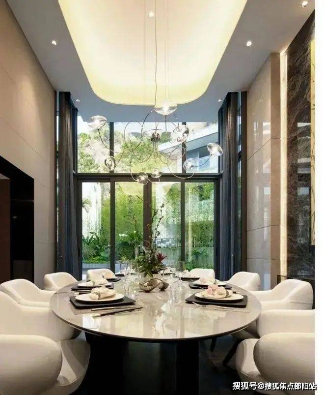 :产权面积 445 平方,花园面积 430 平方,使用面积超 1000 平方。空间布局上,地上四层可分别规划为客厅、餐厅、卧室、书房等不同功能区。6.6 米挑高会客厅,全幅落地玻璃带来 270° 瞰景界面,与窗外山色相映成趣。餐厅与会客厅错层设计,与 430㎡私家庭院无界衔接。地下一层可打造为娱乐室、酒窖等休闲空间。全屋豪华精装修,采用意大利顶奢品牌交标,从 Poltrona Frau 的家具到 Artemide、Flos 的灯具,每一处细节都尽显奢华。