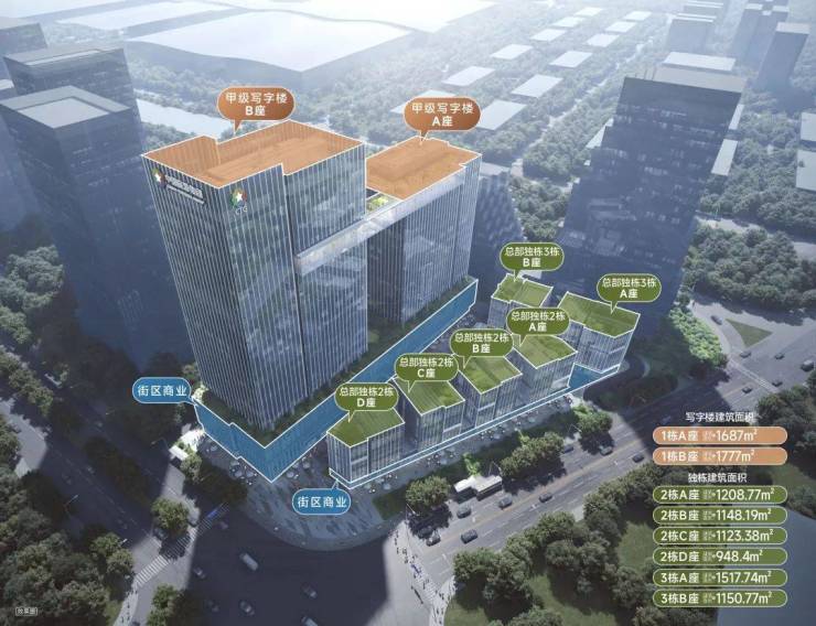甲级写字楼:A座自持,计划引进星级酒店