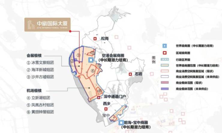 《深圳市总部经济集聚区布局规划》正式对外公布,布局了40个总部经济集聚区,总规划面积约94.08平方公里。其中6个总部经济集聚区布局宝安,涵盖会展海洋新城总部经济集聚、前海湾现代服务业总部经济集聚区;其中项目位于海洋经济及滨海文旅类的会展海洋新城总部经济集聚区核芯位置。