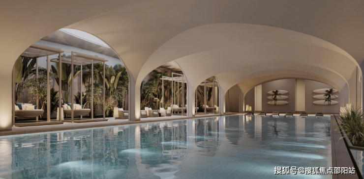 约3000㎡下沉式会所涵盖成人泳池、儿童泳池、健身房、私宴餐厅、下沉酒吧等多样邻里复合功能,满足业主社交、健身等多种需求。