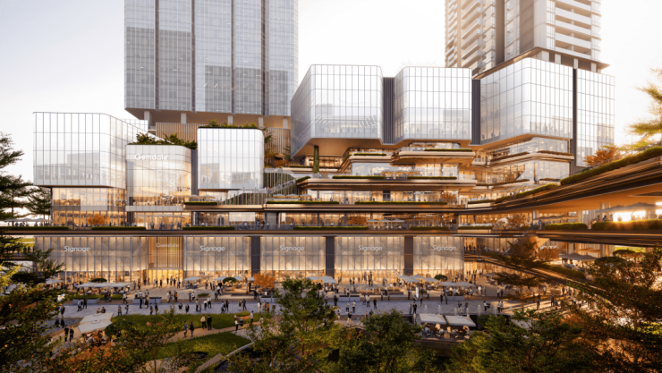 为了打造全球潮流都会魅力场,金地环湾城将“公园”作为中心灵感,将商业休闲与文化艺术空间的开发与生态园林相结合。
