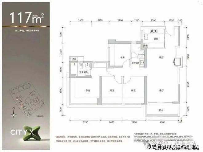 建面约108㎡4房2卫,是陪伴三代同堂/多孩家庭成长的户型。