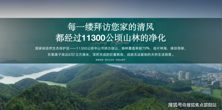收藏”中山市肺“五桂山为凯茵生活之境,约11300公顷天然山林,森海莽莽,森林覆盖率超75%,负氧离子高达8万/立方厘米,交织凯茵绿意底色。