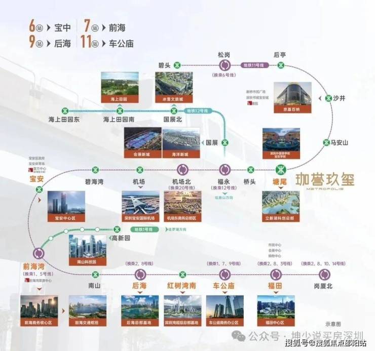 项目临近11号线塘尾站,6站可达宝中、7站前海、9站后海、11站车公庙,出行便捷,能快速通达南山、福田核心片区。