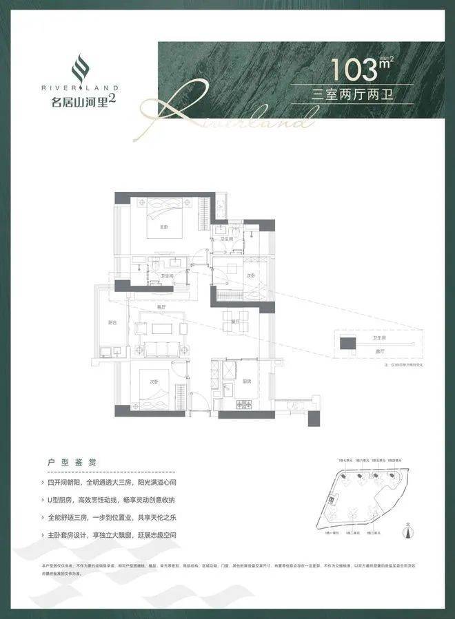 建面约103㎡3房2卫