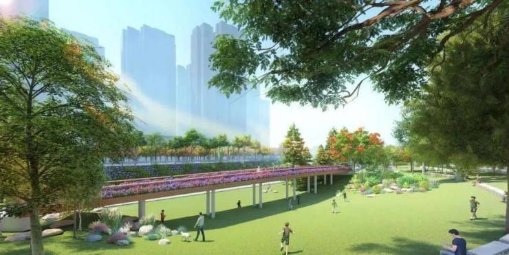 休闲方面,名居山河里紧邻梧桐山河碧道,建设长度约2.4公里,建面约15.66万㎡,环山亲水,串联街心公园与滨河绿廊,打造慢行系统,匠心创著专属绿海水岸IP,成就城市奢适自然主场。