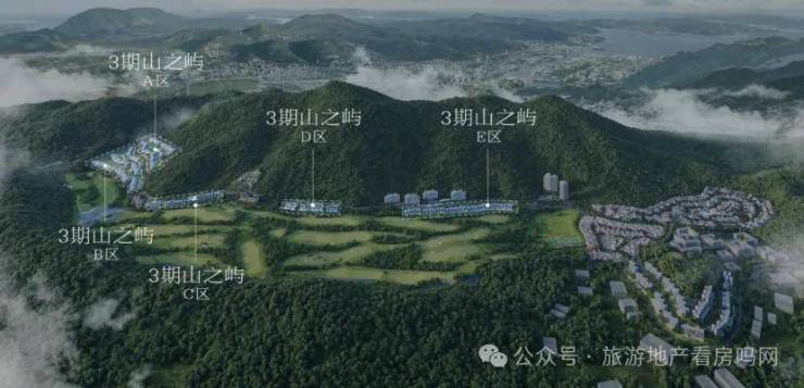 项目三期山之屿占地面积约20.7万㎡,可售建面约9.6万㎡,容积比率0.3,绿化比例50%,共规划262户。产品类型为建面约171-251㎡果岭叠院,交房时间为2026年5月31日(A\B区)、2025年6月30日(C\D\E区)。