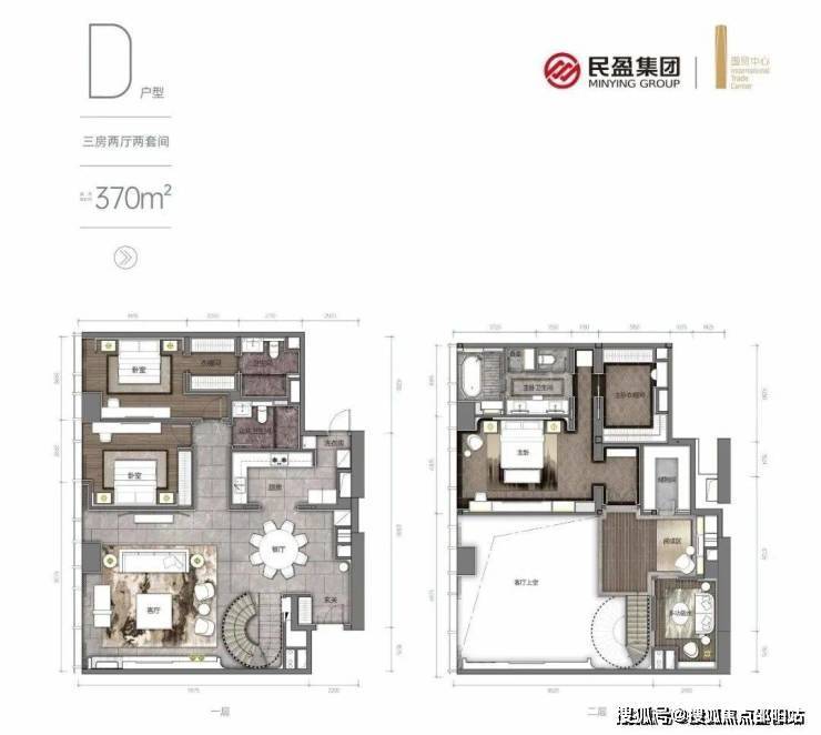 370平户型,三房两厅两套间设计,提供上下复式生活空间。