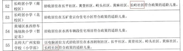 距离最近的俩小学一是长岭居小学(南校区),一是北师大广州实验学校(小学部)——根据《黄埔区2023年义务教育学校招生工作实施细则》,这俩学校均对口长岭社区符合政策的适龄儿童,是以不排除也会纳入招生范围。