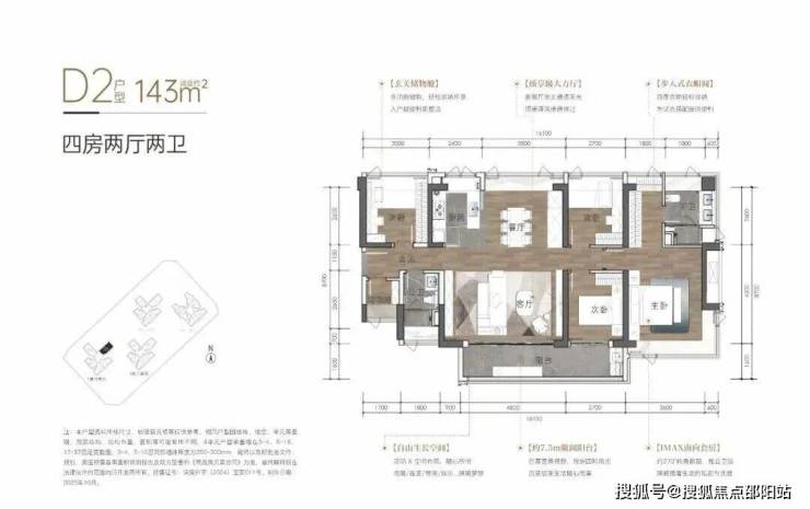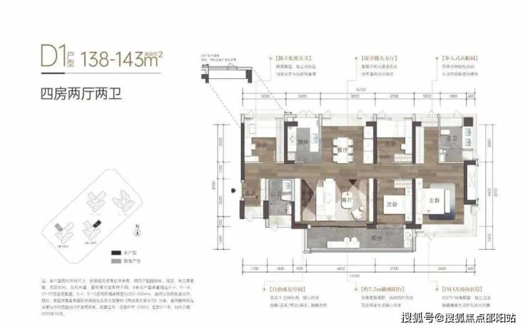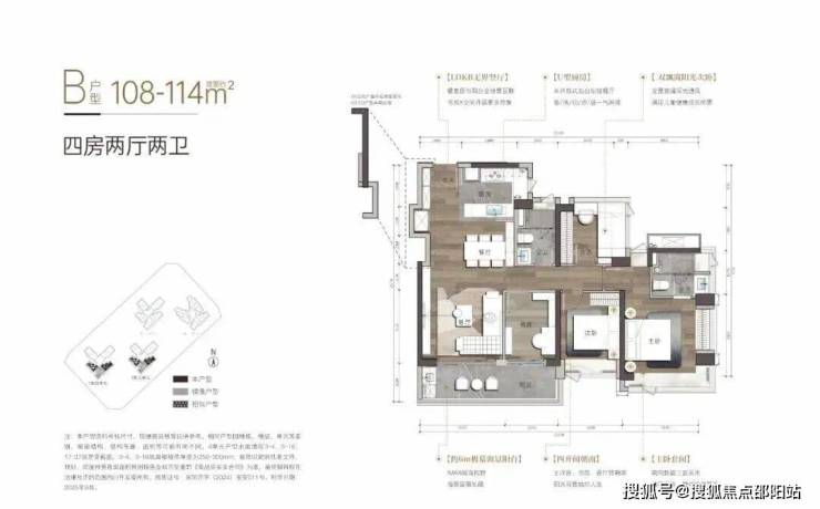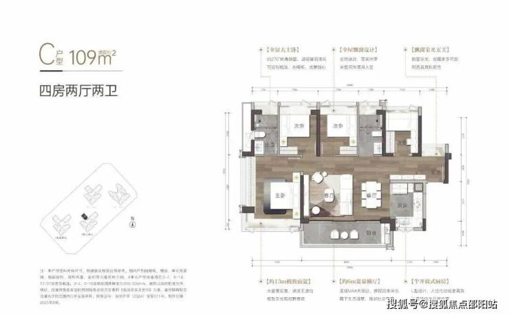 横厅设计,玄关宽敞收纳空间比较多,大面宽观景,通透无遮挡,L型厨房,客餐厅一体,主卧套房设计,约270°转角飘窗。