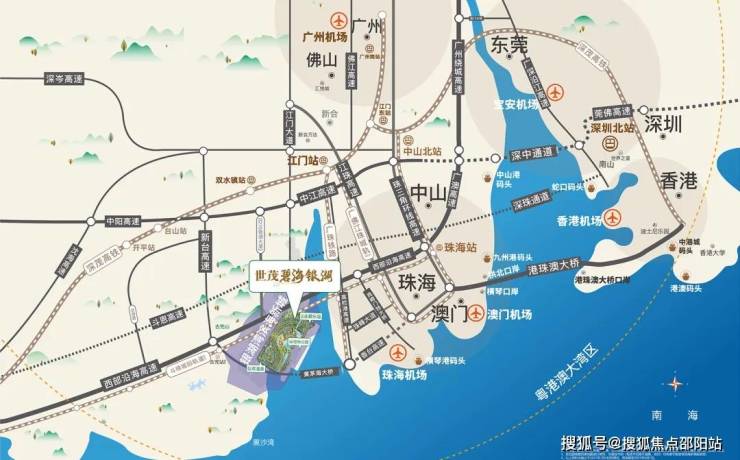 世茂碧海银湖想要打造的一个梦想场景是:用户晚上住在这里,早上可以去广州、深圳、珠海,下午去香港、澳门,晚上再回到家里,泡泡温泉,解解乏。未来黄茅海大桥、城市快车道通车后,以上城市都在1小时生活圈内。
