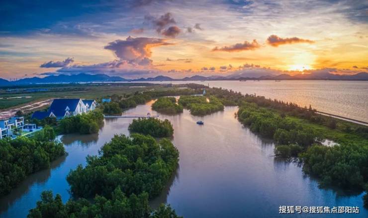 生态配套;约15.8公里黄金海岸线;约10万亩湿地公园;崖山、古兜山、汤瓶山三山围绕,森林覆盖率更是高达90%,空气负离子成分是广西巴马长寿村的10倍还要多;全球罕见山海温泉資源,涵盖几十种多种矿物质与微量元素,媲美日本北海道的温泉度假体验。
