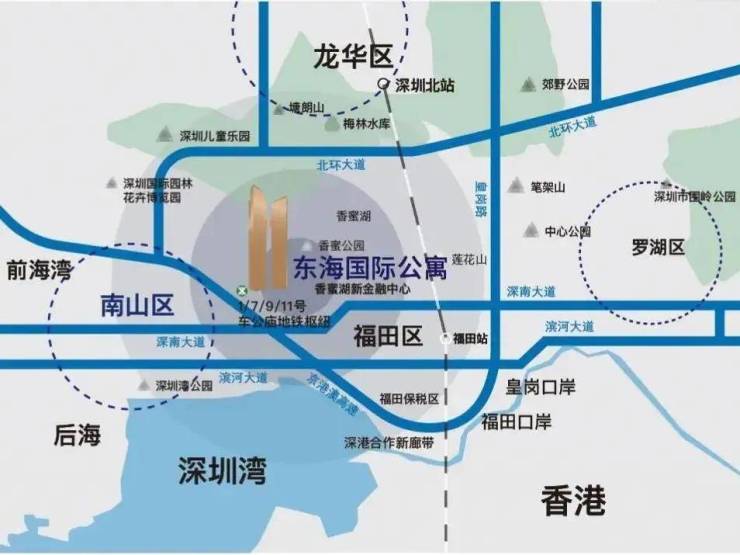 地理位置优越,是1、7、9、11四条地铁交通枢纽上盖物业,交通便利,从福田高铁站抵达香港西九龙站约14分钟,畅达北京、上海等全国重要城市。城市主脉深圳大道接驳京港澳高速G4(广深高速)交汇福田出入口,约20分钟直达深圳机场,畅达深圳湾等各大口岸,拥有“地铁、高铁、城市主干道、高速”多维立体交通,尽得高效与便利。
